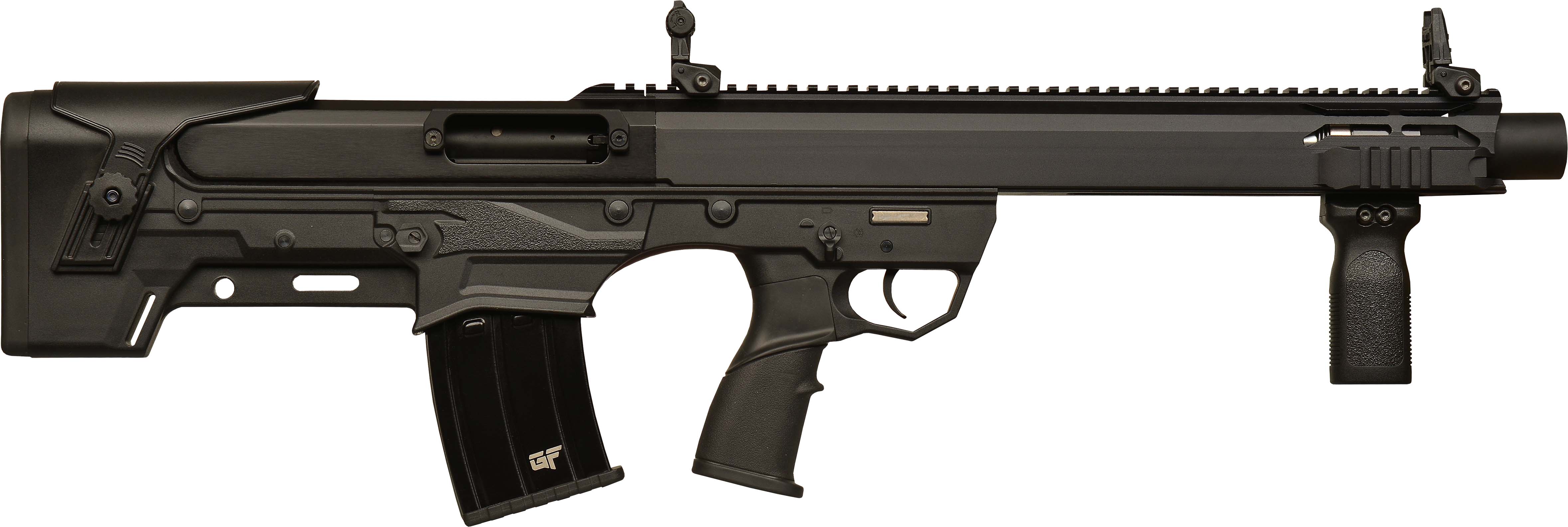 Stock: Black Polymer Bull-Pup,Adj Cheek Rest