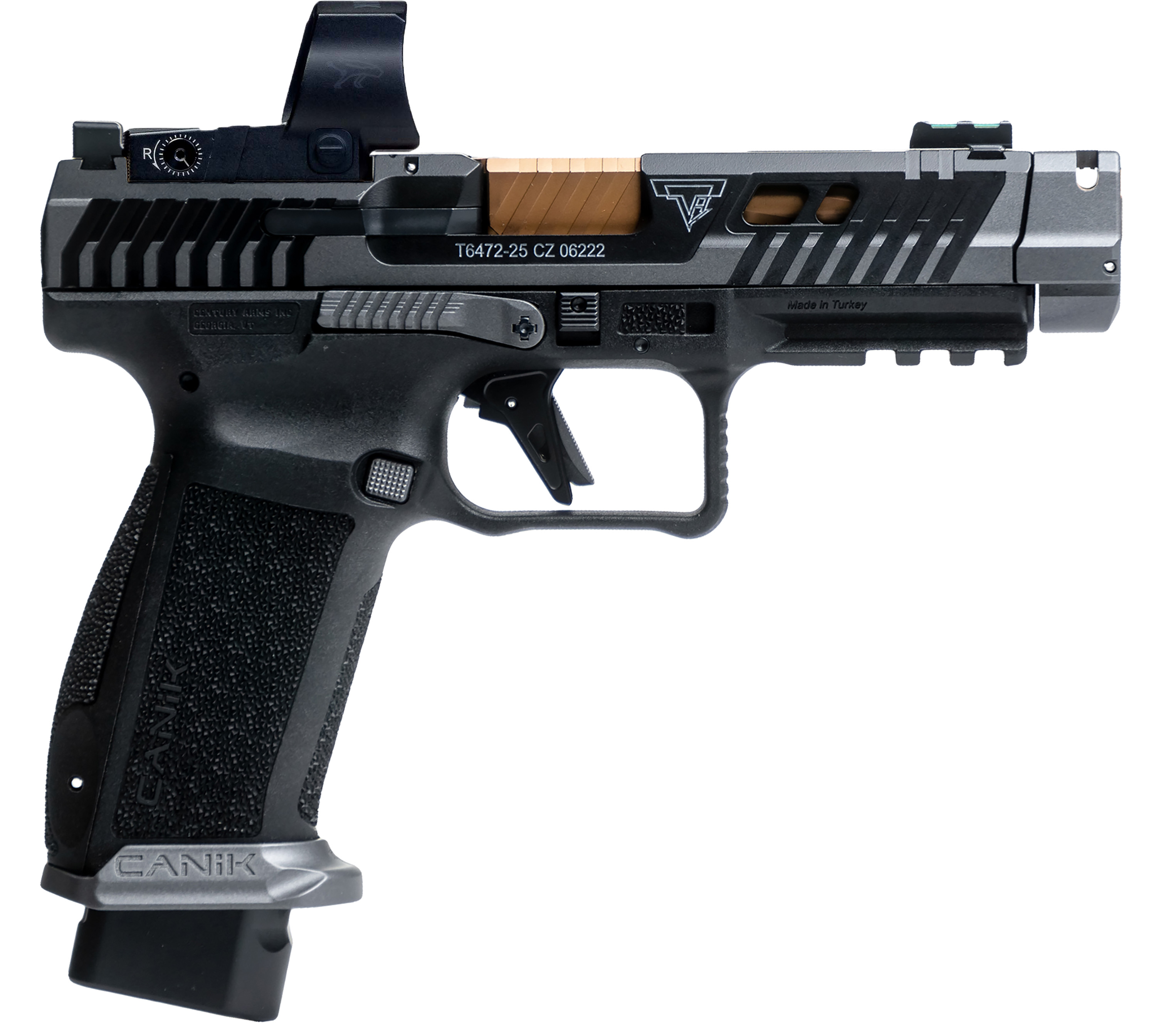 Features: MeCanik Red Dot, Compensator, Aluminum Flat Trigger;