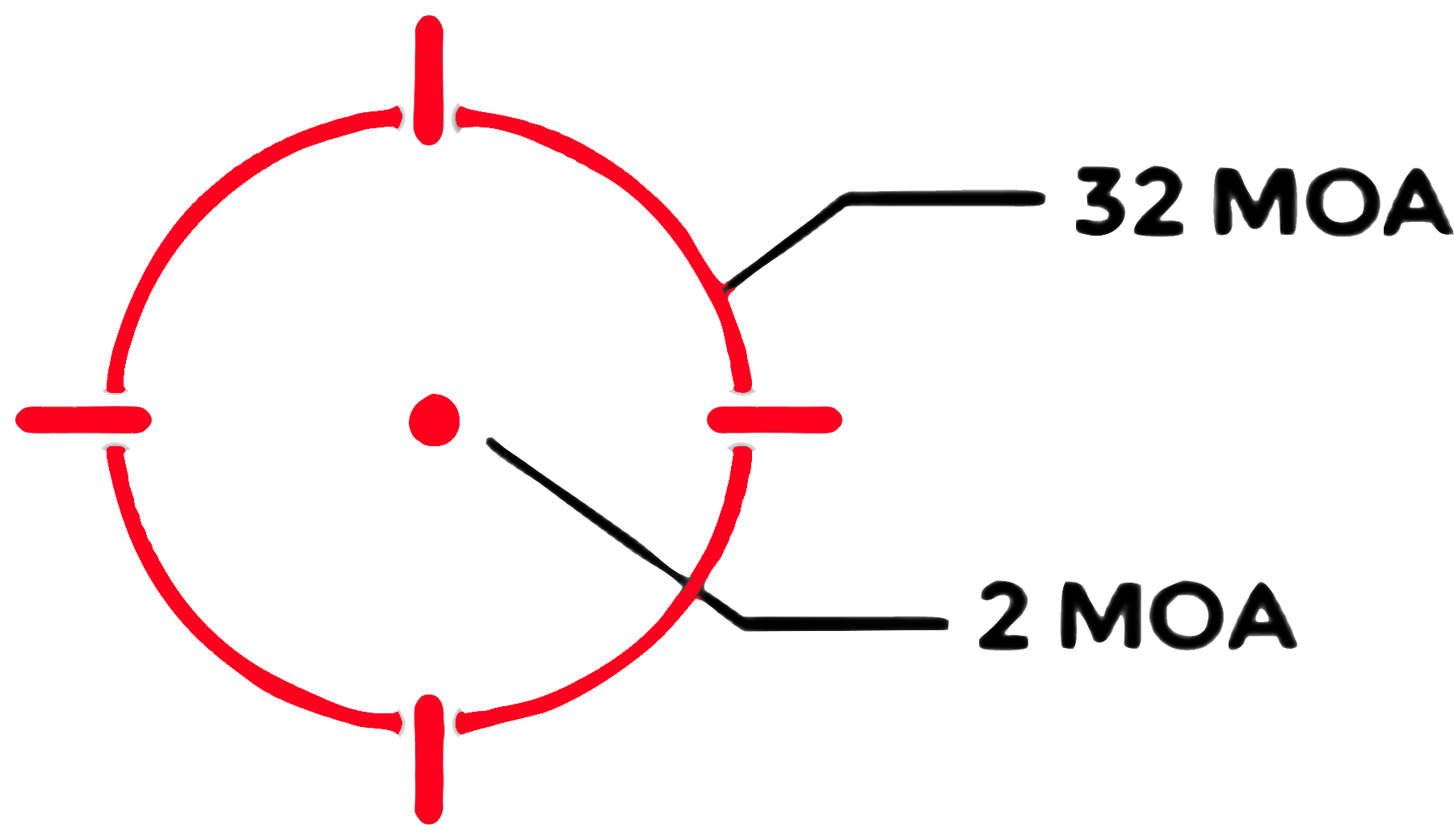 Reticle: Red 32 MOA Circle,w/2 MOA Dot